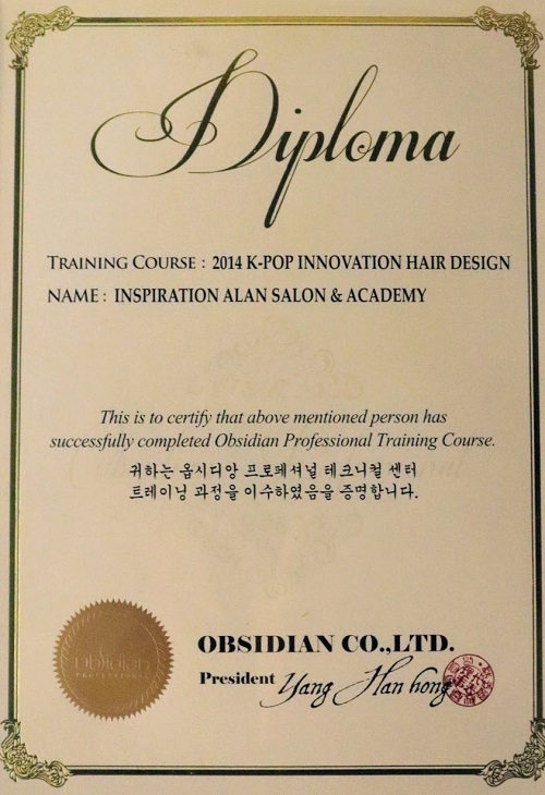 Certificate of Completion for K-Pop Innovation Hair Design Course (2014)