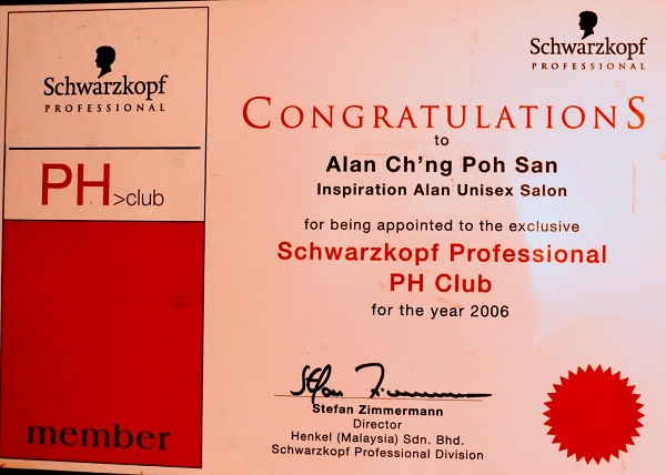 Appointed to the Schwarzkopf Professional ph Club Membership (2006)