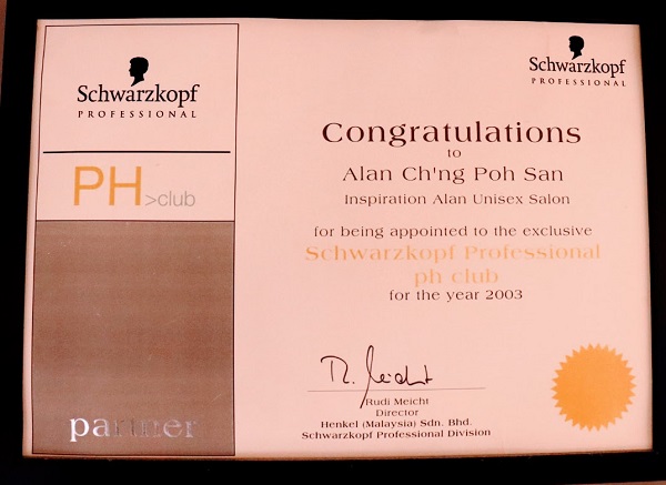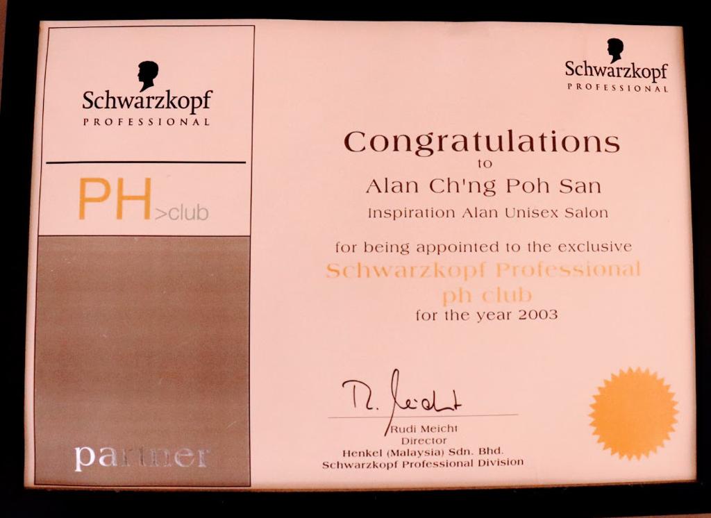 Appointed to the Schwarzkopf Professional ph Club Membership (2003)
