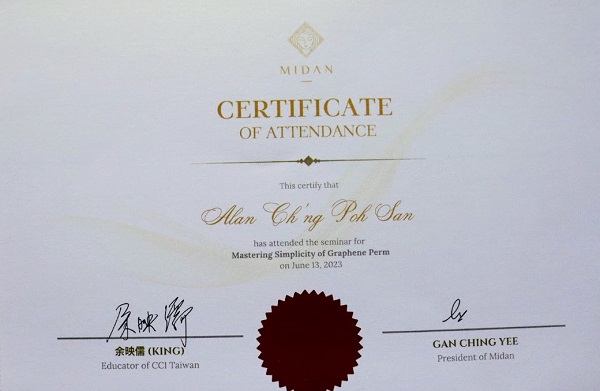 Certificate of Attendance for Seminar of Mastering Simplicity of Graphene Perm