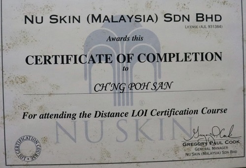 Certificate of Attendance for ESSENTIAL LOOKS 1/2013 Look & Learn Seminar, Sabah (2013)